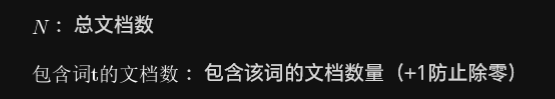 IDF(Inverse Document Frequency,逆文档频率): 衡量词在全局语料库中的稀有程度